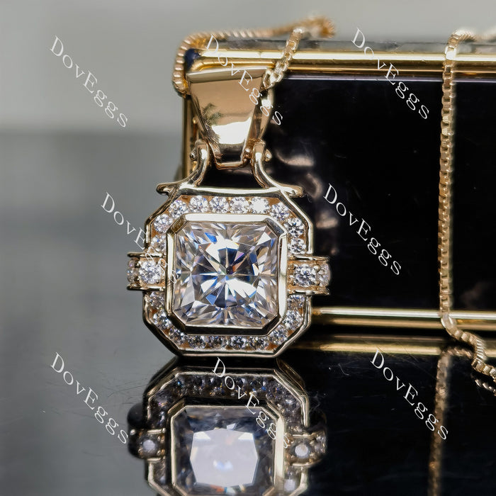 Asscher bezel channel set moissanite pandant necklace (pandant only)|Doveggs