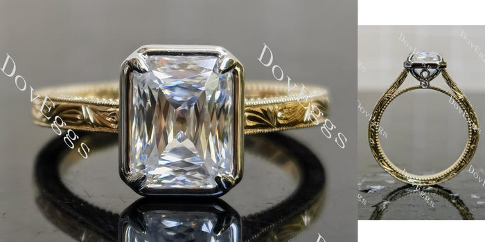 Cirss cut carving bezel moissnaite engagement ring| Doveggs