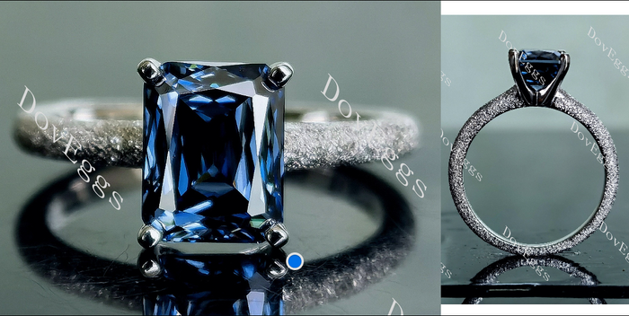 Doveggs criss cut elongated cushion solitaire textured colored gem engagement ring