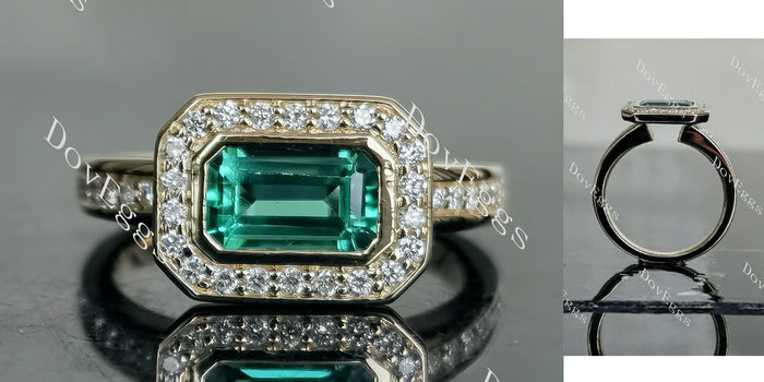 Doveggs elongated emerald halo colored gem engagement ring