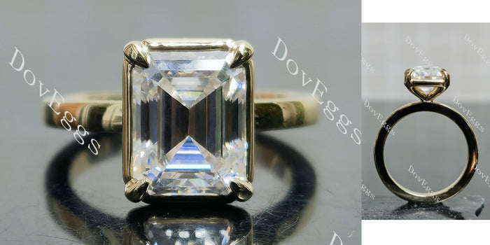 Doveggs emerald solitaire bezel moissanite engagement ring