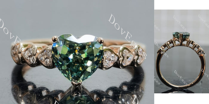 Center stone: 1.5ct(7.5mm), Heart astro cut, Peacock blue moissanite, VS1-VVS1 clarity