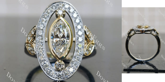 Marquise bezel art deco vintage pave moissnaite engagement ring| DovEggs