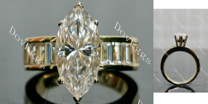 Center stone: 3ct(7*14mm), Marquise Modified H&A cut, GHI color(near colorless) moissanite, VS1-VVS1 clarity