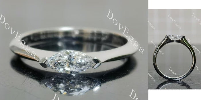 Marquise east west directions solitaire moissanite engagement ring| DovEggs