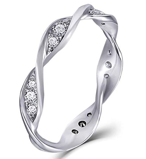 The center stone of picture is total 0.36ct moissanite. Ring setting is 14k white gold.Band width: 3.5mm.