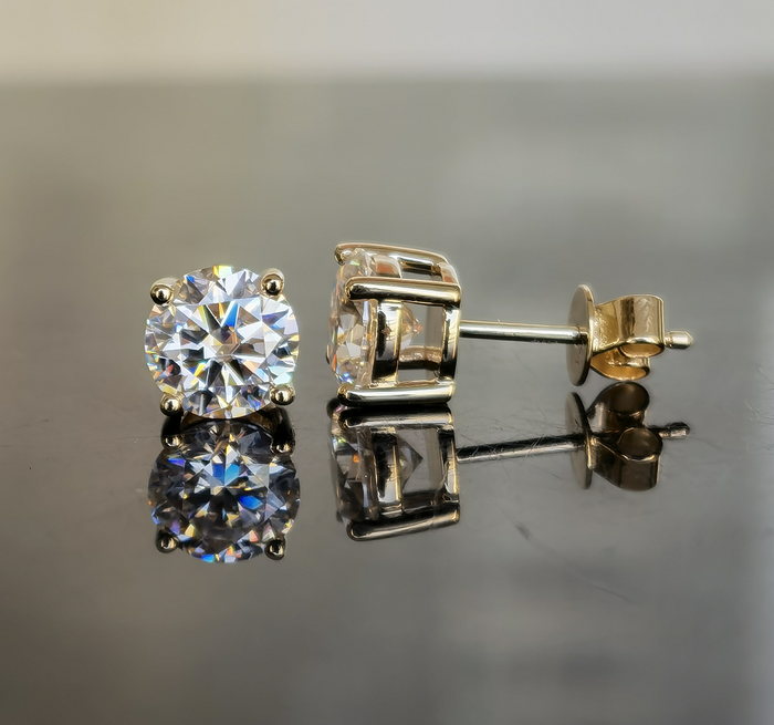 The center stone of picture is 1ct(6.5mm) GHI color moissanite. Earring setting is 14k yellow gold.