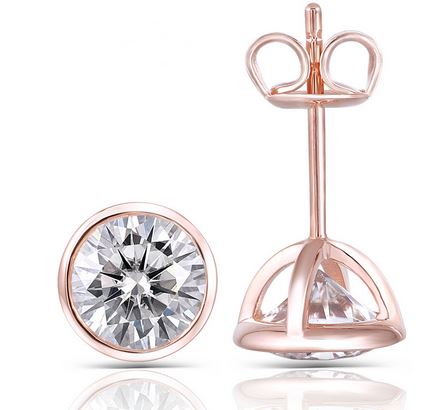 The center stone of picture is 1ct(6.5mm)/per GHI/DEF Color round cut moissanite. Earring setting is 14k rose gold.