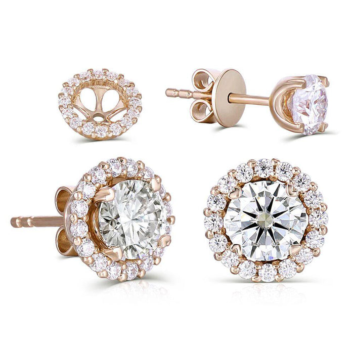 The center stone of picture is 0.5ct(5mm)/per GHI/DEF Color round cut moissanite,moissanite accent. Earring setting is 14k rose gold.