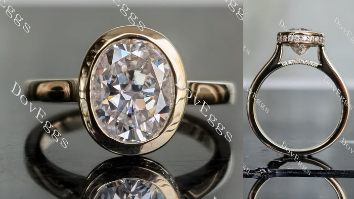 Oval bezel hidden halo moissanite engagement ring| DovEggs