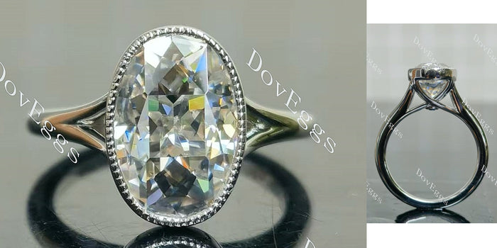 Oval bezel split shanks moissanite engagement ring| Doveggs