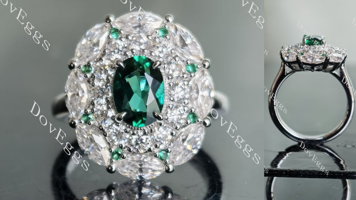 Center stone: 1ct(5*7mm), oval, zambia emerald colored gem, VS1-VVS1 clarity