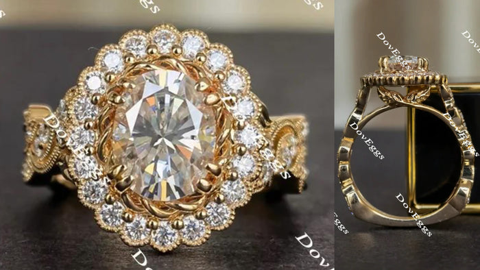 The Fiona-Oval flower shape moissanite engagement ring| DovEggs