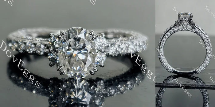Center stone: 1ct(5*7mm), oval Astro cut, DEF moissanite, VS1-VVS1 clarity
