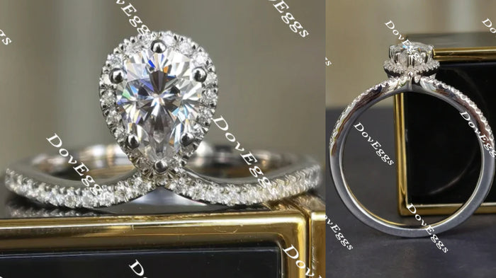 DovEggs paved halo pear moissanite engagement ring