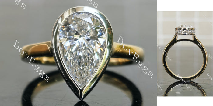 Pear bezel hidden halo moissanite engagement ring| Doveggs