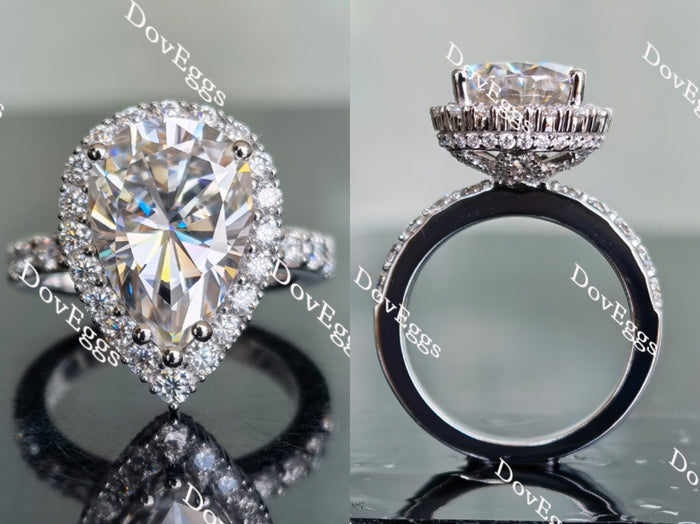 Doveggs pear half eternity pave halo moissanite engagement ring