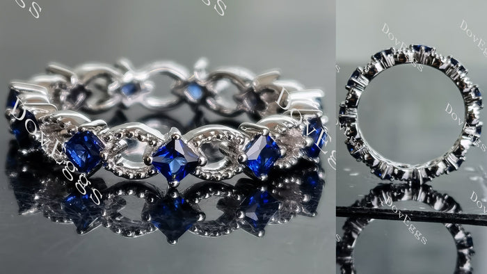 Center stone: 0.15ct(2.5mm), princess, intense royal blue sapphire colored gem, VS1-VVS1 clarity