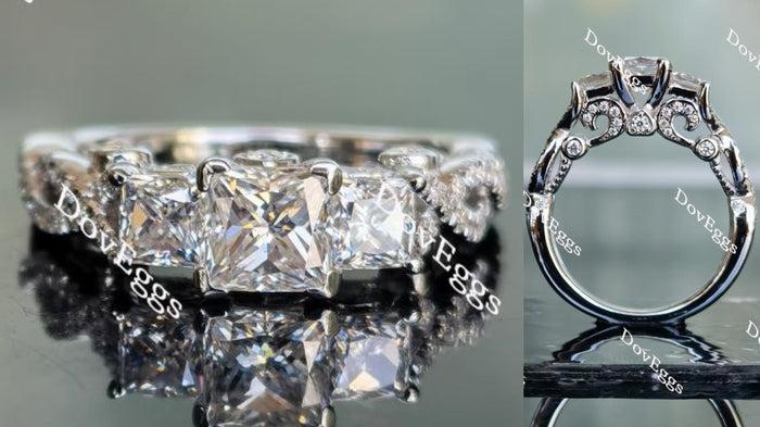 Doveggs princess pave vintage three-stone moissanite engagement ring