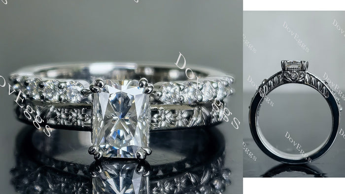 Center stone: 1ct(5*7mm), radiant Astro cut, GHI color(near colorless) moissanite, VS1-VVS1 clarity