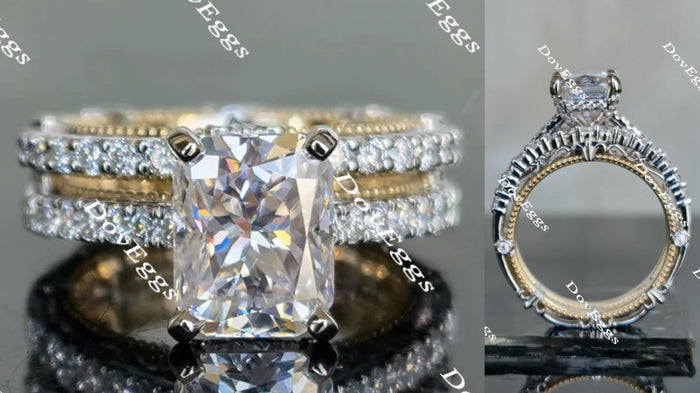 Doveggs Radiant Vintage/Antique Moissanite bridal set(2rings)