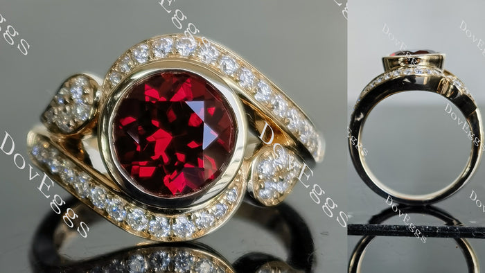 Center stone: 2ct(8mm), round Astro cut, vivid pegion blood ruby, colored gem, VS1-VVS1 clarity