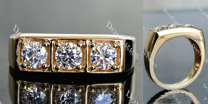 Center Stone: 3 pieces of 0.4ct(4.5mm), round, GHI(near colorless) moissanite, VS1-VVS1 clarity