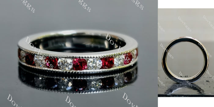 Doveggs round eternity channel set moissanite/lab grown diamond & colored gem wedding band-3.3mm band width