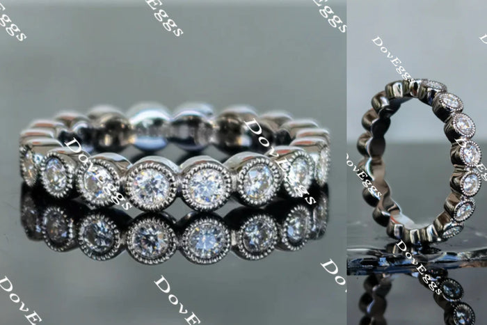 Doveggs round full eternity moissanite/lab grown diamond wedding bands-3.3mm band width