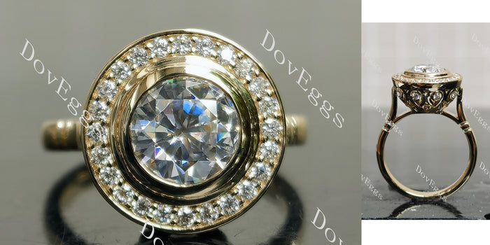 Center stone: 1.5ct(7.5mm), Round H&A Cut, GHI (near colorless) moissanite, VS1-VVS1 clarity