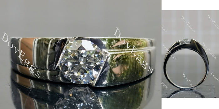 Center stone: 1ct(6.5mm), H&A Cut, Round, GHI (near colorless) moissanite, VS1-VVS1 clarity