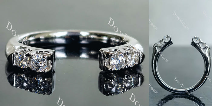 Center stones: no bigger than 3mm, round, near colorless/colorless moissanite, VS1-VVS1 clarity