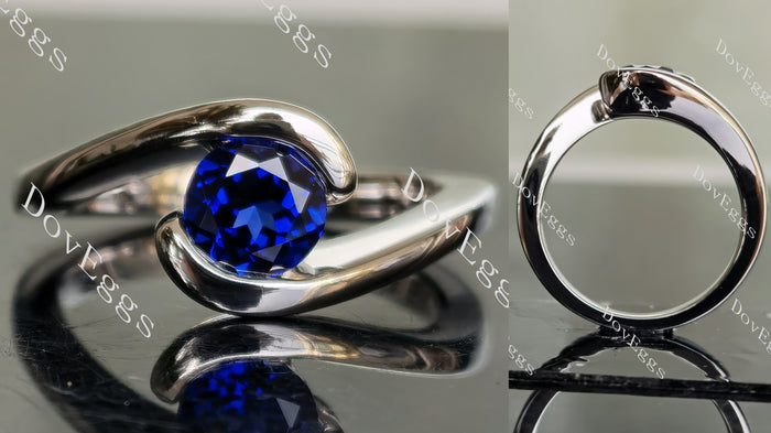Ocean Wave round solitaire intense royal blue sapphire colored gem engagement ring