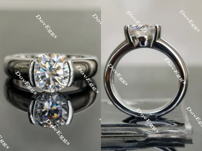 Center stone of picture is 1.5ct(7.5mm) GHI color Round H&A Cut DovEggs moissanite. Ring setting is 10k white gold.