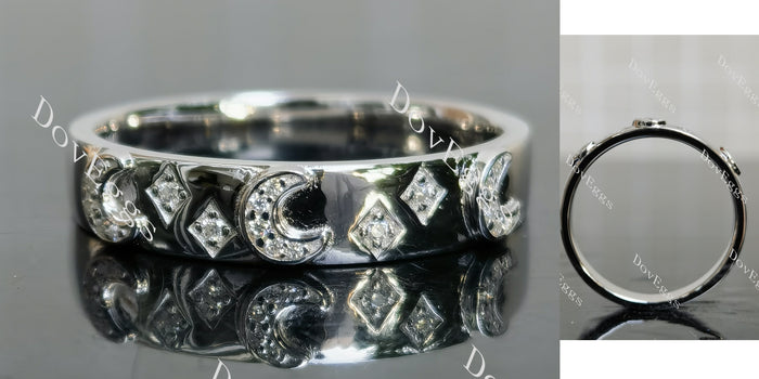 Doveggs star and moon round moissanite/lab grown diamond wedding band-3.5mm band width