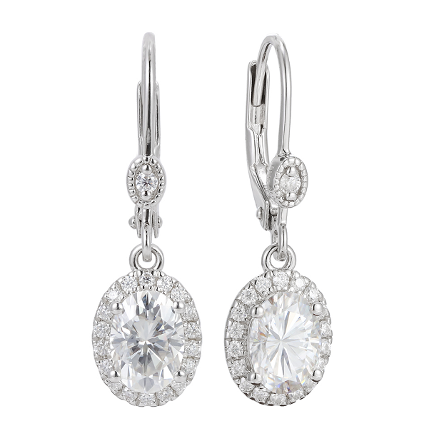 Center stone of picture is 1ct(5*7mm)/per GH color oval moissanite. Earring setting is sterling silver.