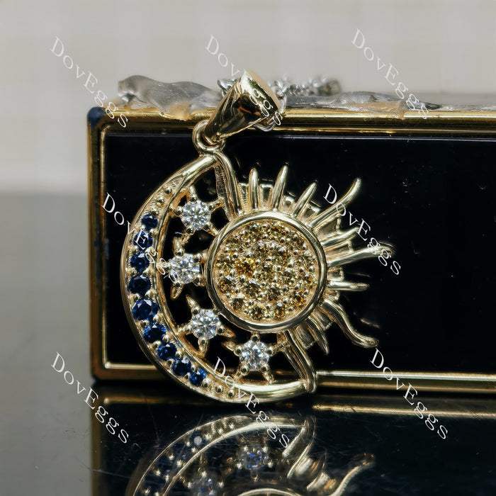 Doveggs sun moon and star round colored gem/moissanite/lab grown diamond accents pendant necklace (pendant only)