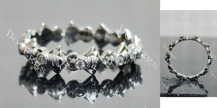 Doveggs tiny honeybee eternity round bezel moissanite/lab grown diamond wedding band-4.3mm band width