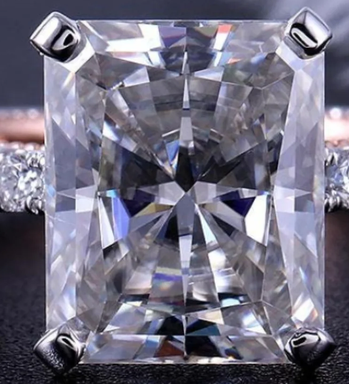 $912 for this ring with a 3ct(7*9mm) DEF color radiant moissanite center, moissanite accents in 10k white gold and yellow gold inner shank. Size 6.5