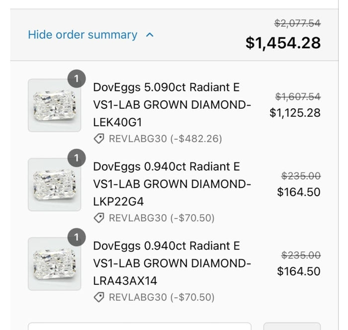 First Layaway payment of Lab diamonds ( Discount Applied, Review needed)