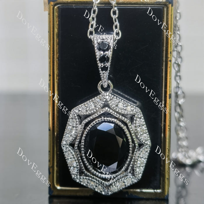 Oval art deco pave halo colored gem pendant necklace (pendant only)| Doveggs