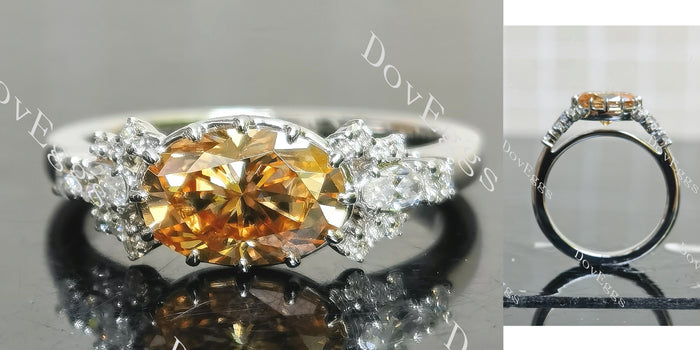 Accents: around 2*4mm oval & no bigger than 2.8mm round, can be near colorless/colorless moissanite accents or lab grown diamond accents or colored gem