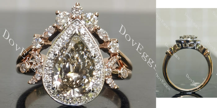 Pear halo pave art deco moissanite engagement ring| DovEggs