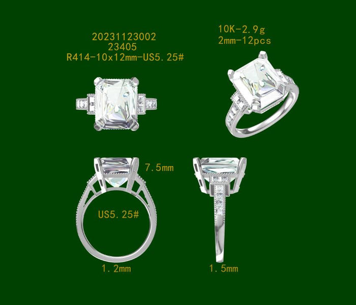 It is $1026 for this ring with 8ct(10*12mm)FG color radiant moissanite center, moissanite accents in 10K white gold. Size 5.25