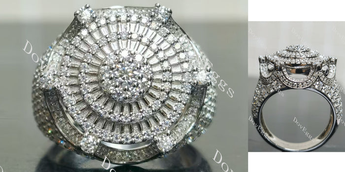 Round hip hop pave halo moissanite wedding band/Men's ring| Doveggs