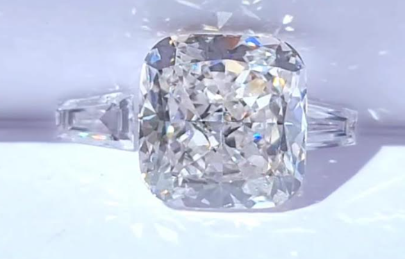 $519 for this ring semi mount without #23029 center stone, 2 pieces GHI color baguette moissanite and round moissanite accents in 10K white gold. Size 7.5