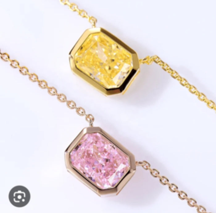Setting only to fit 2.04ct Pink Radiant Diamond In 14k YG 14inch 14kYG chain