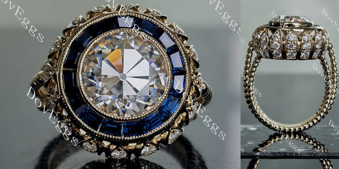 Center stone: 4.5ct(10.5mm), round old europe cut, GHI moissanite, VS1-VVS1 clarity