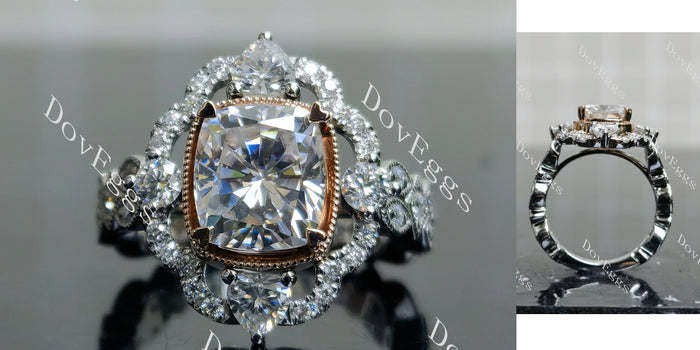 Vanessa cushion floral bezel moissanite engagement ring