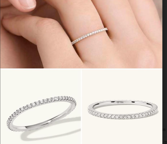 $298 for this band with moissanite stones in 10K white gold. ( full eternity) Size 4.25 ( 2mm band width)